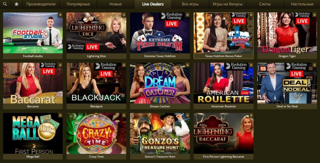 Для любителей игр с живым дилером, на официальном сайте казино Эльдорадо реализован раздел с Live-дилерами.