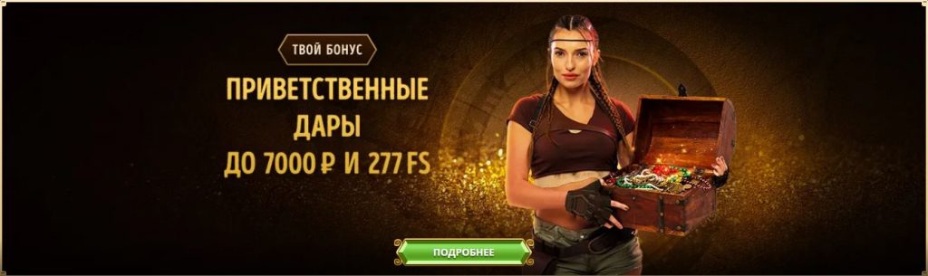 Таким образом, новые игроки могут получить в сумме до 7 000 рублей и 277 бесплатных вращений в подарок.
