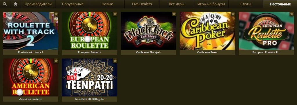 Помимо онлайн-слотов в казино Эльдорадо есть раздел с Настольными играми и Live-дилеры.
