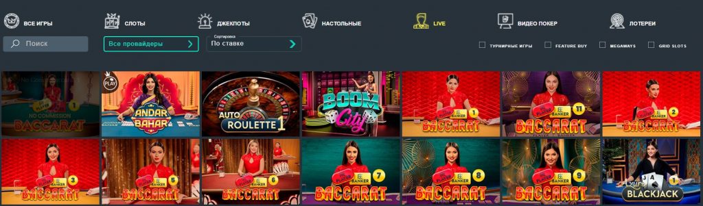 На официальном сайте казино Джозз доступны игры с Live-дилерами, они так же находятся на отдельной вкладке. В формате игры с живыми дилерами доступны наиболее популярные игры – рулетки, баккара, блэкджек и т.д. Онлайн трансляции идут 24/7.