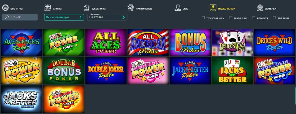 Категория создана для любителей аналога популярной карточной игры. На странице доступны несколько разновидностей видеопокера, в каждой из которых предусмотрена демоверсия.