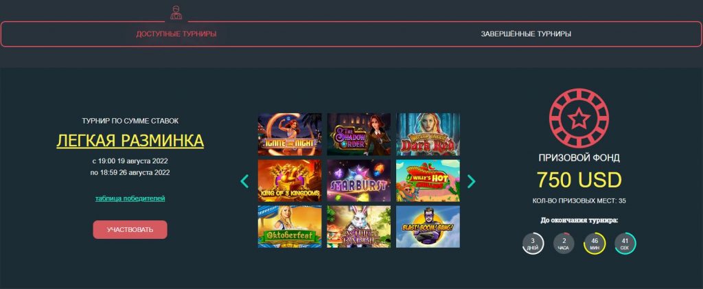 Для игроков доступны тысячи игровых автоматов, выгодная бонусная программа и регулярные турниры.