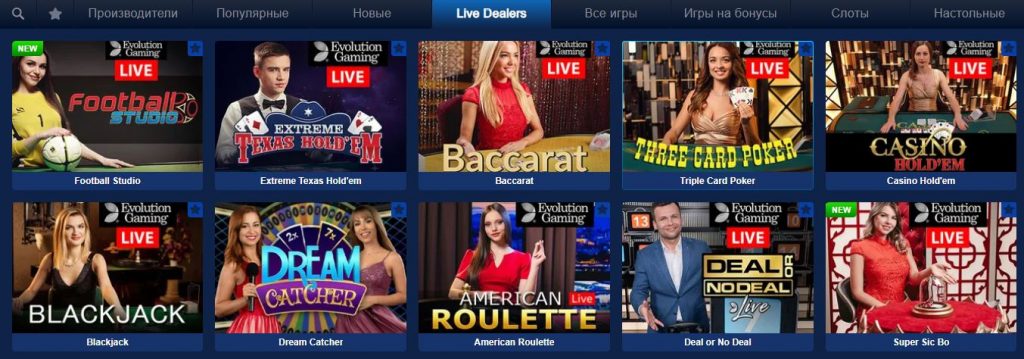 Для тех игроков, которые хотят испытать драйв настоящего казино, на сайте доступен раздел с Live-дилерами. Посетители казино могут играть в рулетку, блэкджек, покер и другие азартные игры в режиме реального времени!